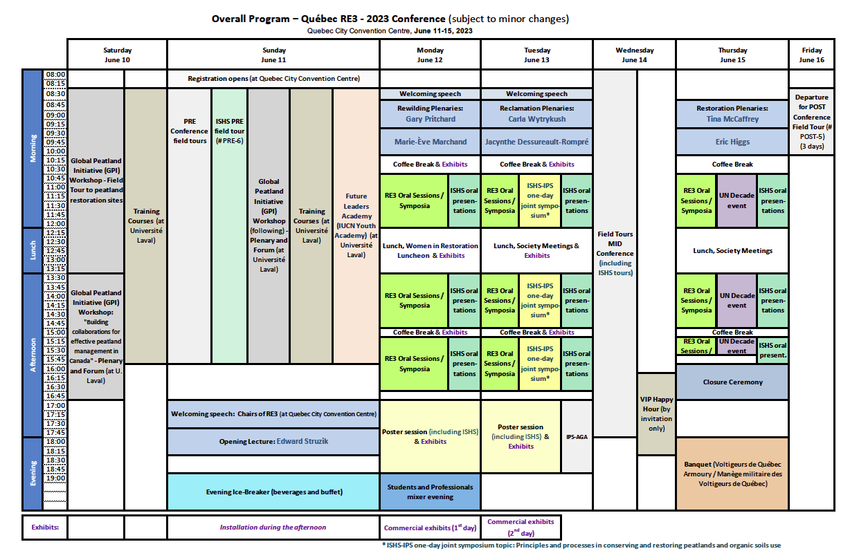 A high segment Plenary Session (in English) will convene experts from high level global secretariats (IUCN, UN Decade, CBD, UNEP, Ramsar, SERI, IPCC) to present short allocutions about how ecological restoration, rewilding, and reclamation can assist in reaching their specific international mission goals. Canadian politicians are also invited to interact with participants.